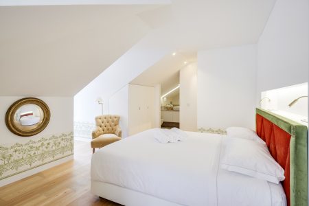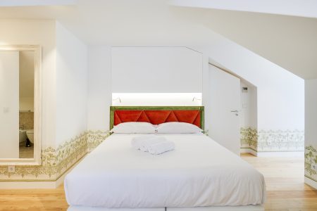 – Quarto principal composto por uma cama de casal (não é possível preparar duas camas individuais) e casa-de-banho com duche e aquecedor de toalhas
