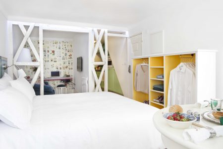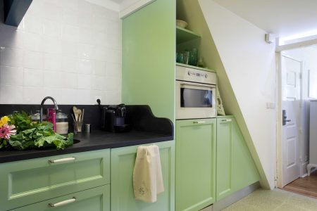 This open space apartment is part of a typical Bairro Alto house, located on the 1st floor with access by steep stairs. It has one bedroom with a double bed and it is possible to transform into two single beds, having a maximum capacity of 2 people.